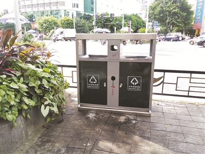 市區(qū)勝利路、鐘法路115個(gè)果皮箱“集體換裝”
