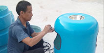 首先在制作好的模具清理表面的垃圾灰塵,打好8#蠟,打上脫模劑晾干后,刷上一層“33#膠衣”,表面光滑,就是這個膠衣的效果,等它干了后,就開始用調配好的玻璃鋼...