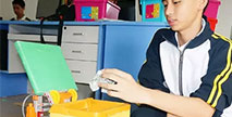 用卡紙包裝的方形桶裝外觀,樂高積木砌成的支架。這樣看似其貌不揚,甚至是簡陋的垃圾桶,雙手靠近時,卻能感應(yīng),并迅速自動打開垃圾桶蓋;當垃圾桶內(nèi)水果皮、廚...