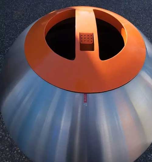 投放口在球身頂部,圓環(huán)形的口蓋顏色可以隨意搭配選擇,就目前所見,在德國柏林采用了醒目的橙色,在荷蘭皮爾默倫德采用了低調(diào)的黑色。蓋子上細心設計了一小塊凹槽作為公共煙灰缸專供行人在這里站立吸煙并放置掐滅了的煙蒂。